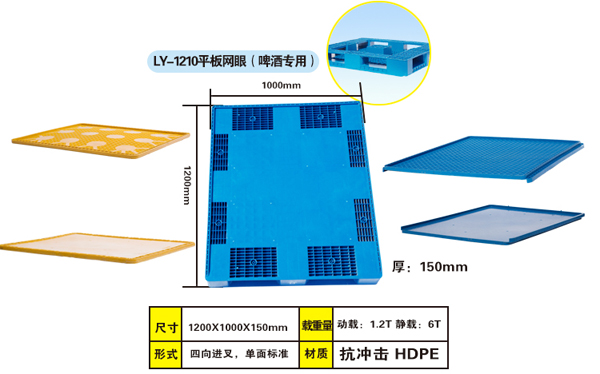 DP-1210-啤酒托盤隔板 隔板尺寸:1200mm× 1000mm×45mm(±5mm) 載重:動載不小于1500 kg 靜載不小于6000 kg 自重:19.5 ±0.5kg 隔板: 6 ±0.5kg 啤酒專用托盤 www.tyzcjrbj.cn